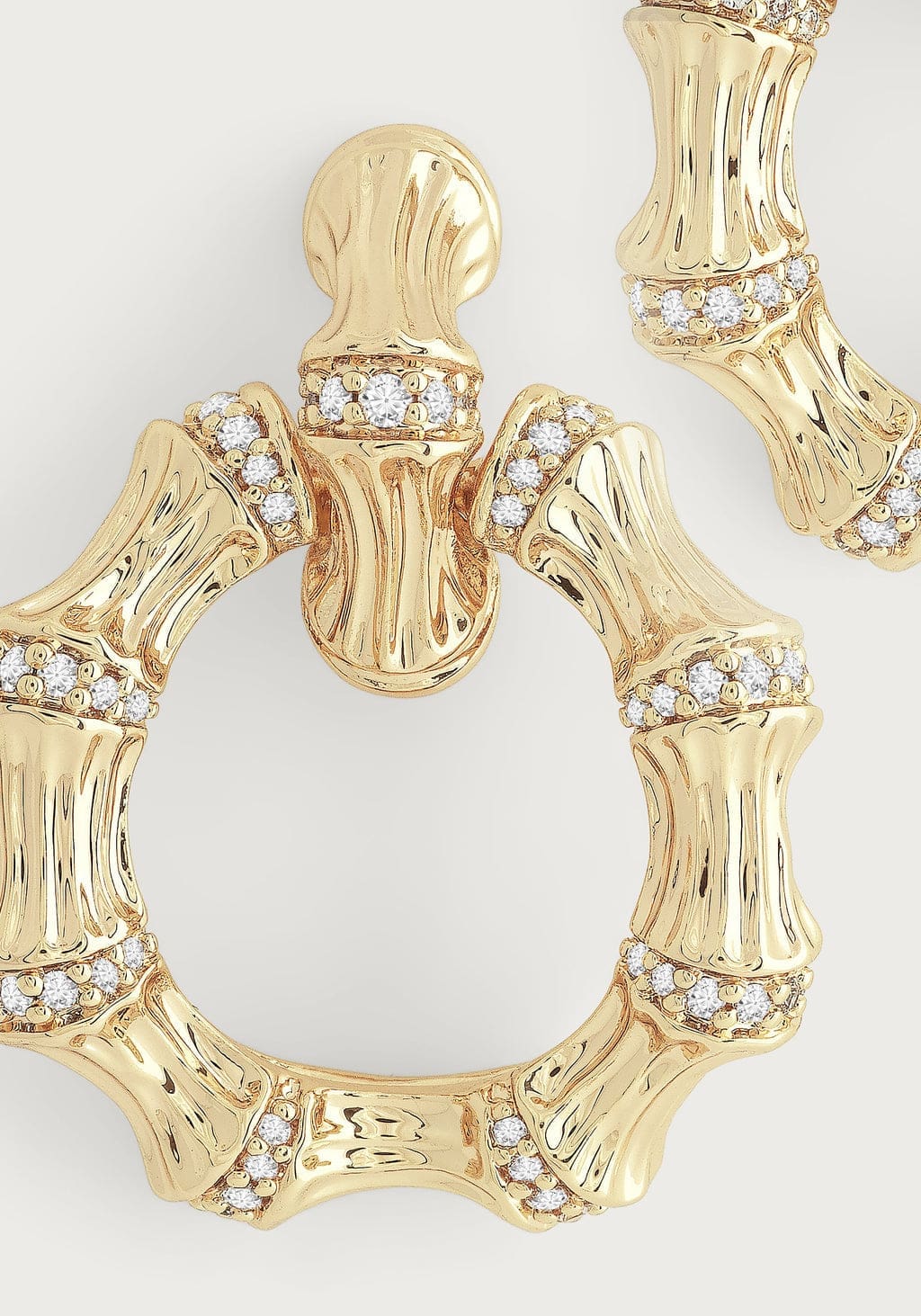 Sculpted from 18k gold dipped brass and adorned with sparkling crystals, the bamboo hoops are thick enough to make a statement, crafted to be worn comfortably. Lightweight and dazzling – these hoops have it all! Made with 18k gold dipped brass and glittering crystals, they’ll make a bold statement without weighing you down. Comfort and style? It’s a win-win situation.