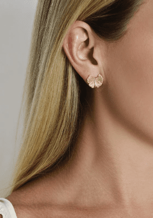 These hand sculpted butterfly studs are crafted in 18k gold dipped brass and accented with hand-set crystals. These beautiful and exquisitely made earrings are timeless addition to your everyday wardrobe. Add a touch of elegance and sparkle to your outfit with these hand-crafted butterfly studs. Made with 18k gold dipped brass and adorned with hand-set crystals, these earrings are a luxurious must-have for your everyday look.