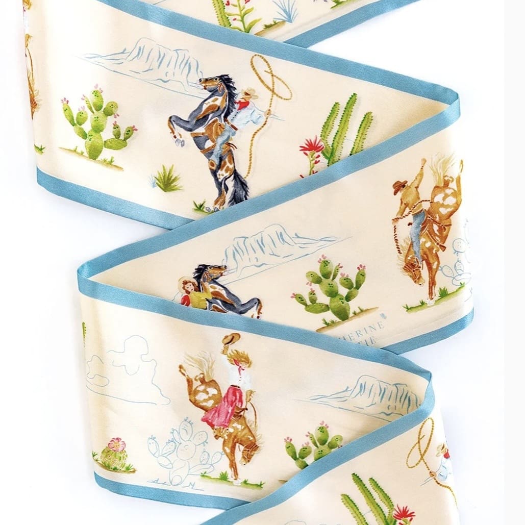 Catherine Cartie Rodeo Cowboy Ribbon Silk Scarf