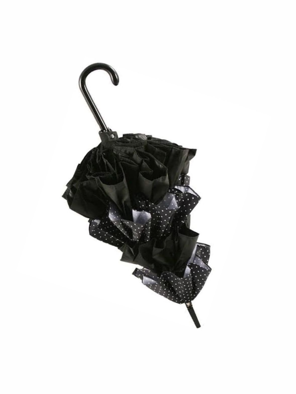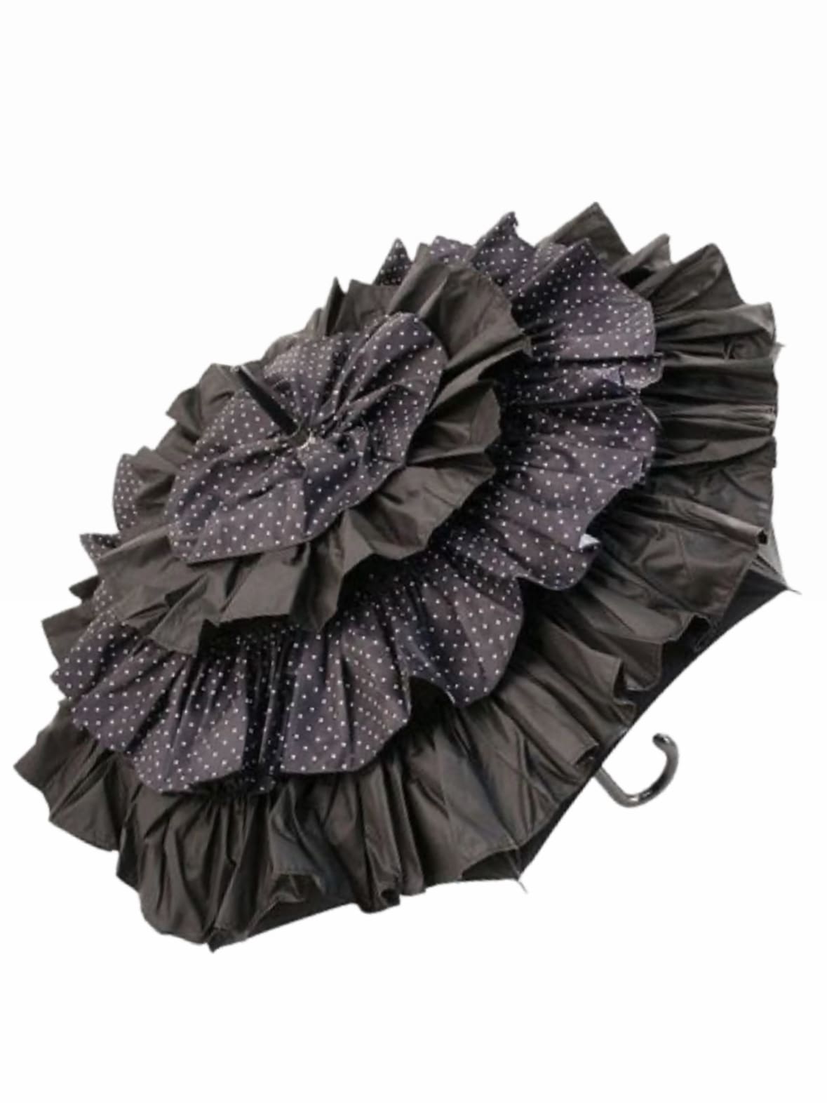 Guy de Jean Black/Black & White Polka Dot Cancan Umbrella / Volants French Cancan 60 MAT BOIS