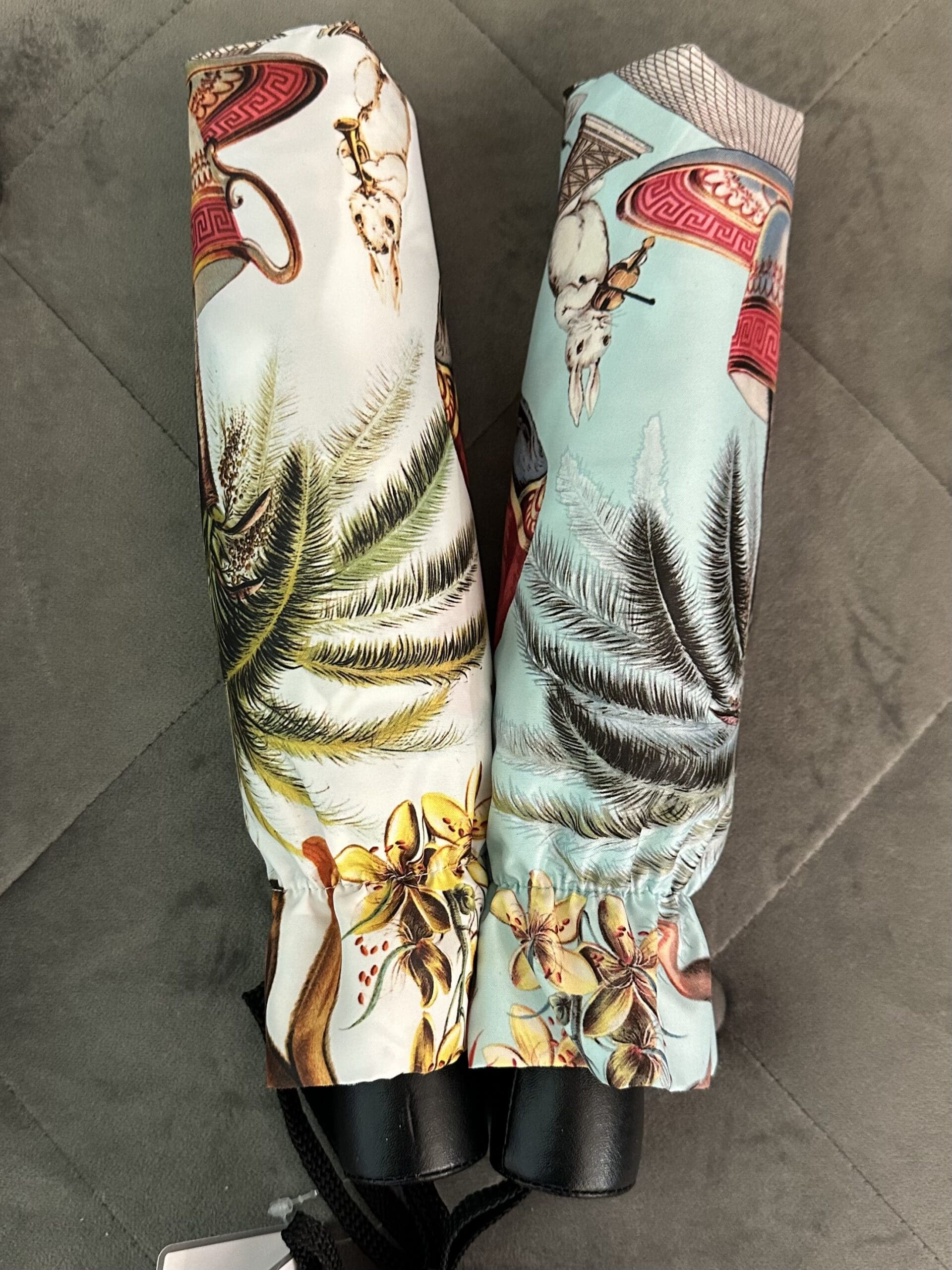 The perfect compact with a fun “Jungle” design in Ivory. The Guy de Jean Mini Matic 54/8 Acier in a “Jungle” design is a high-quality, foldable automatic umbrella made in France. Guy de Jean is a luxury French umbrella manufacturer founded in 1920, known for its durable and stylish products.