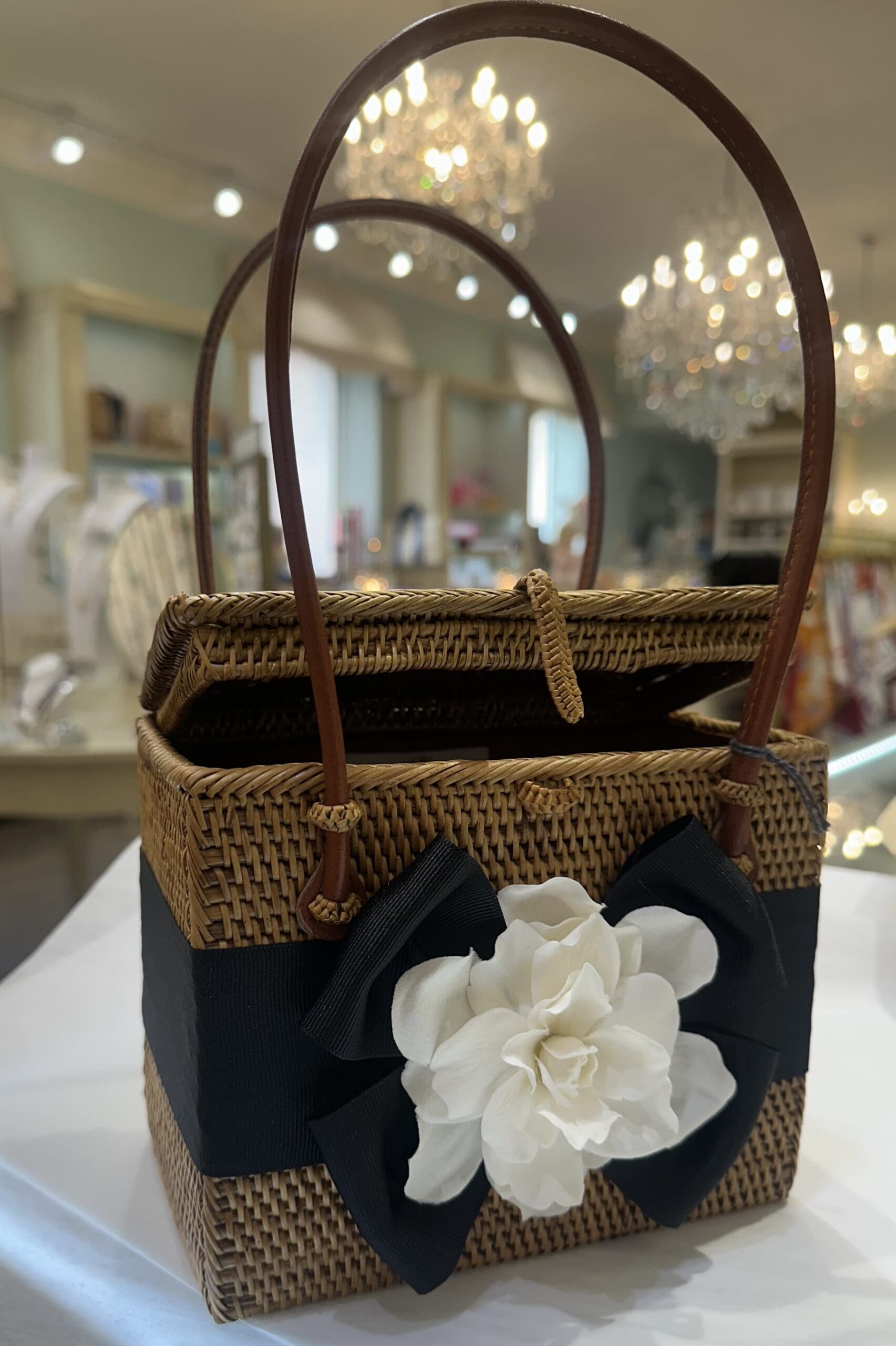 Handbag – Gardenia Flower – Black Ribbon