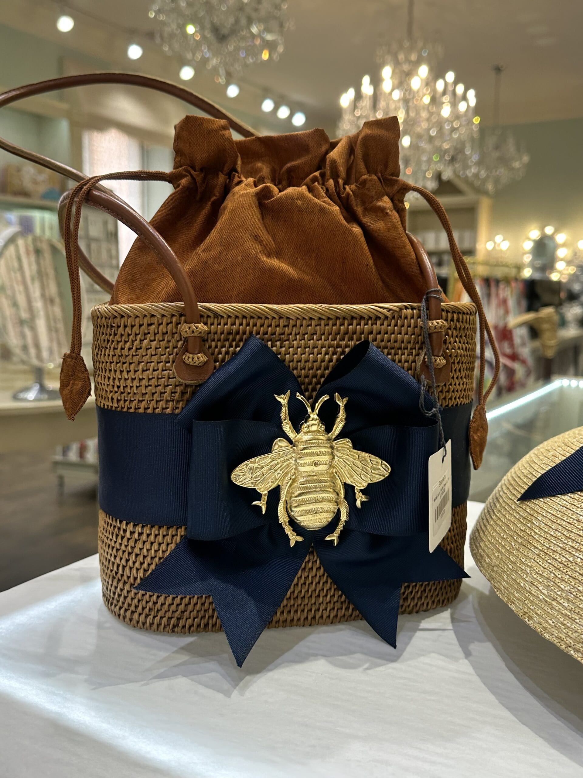 PLEASE NOTE: PICTURES SHOW NAVY RIBBON, but this handbag will come with a BLACK RIBBON AND XL BEE adornment.