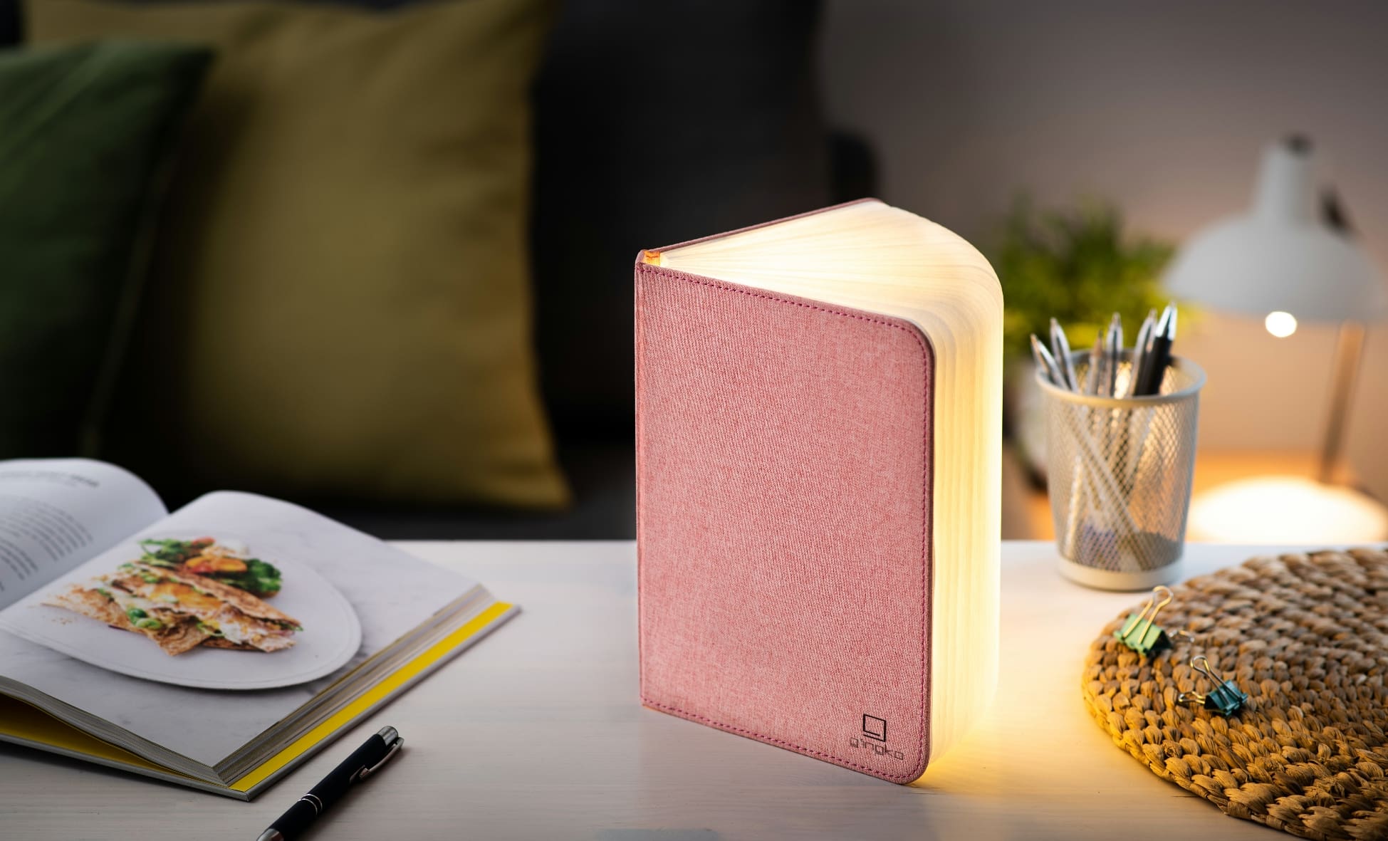 The Linen Fabric Smart Book Light collection brings a brand new material to our Smart Book Light collection and it’s certainly a great additional piece of art to any home. When closed, this Smart Book Light masquerades as a natural looking mini or large linen notebook, but when opened it transforms into a sculptural piece creating a wonderful ambient glow using warm white LED light emitted through the pages.